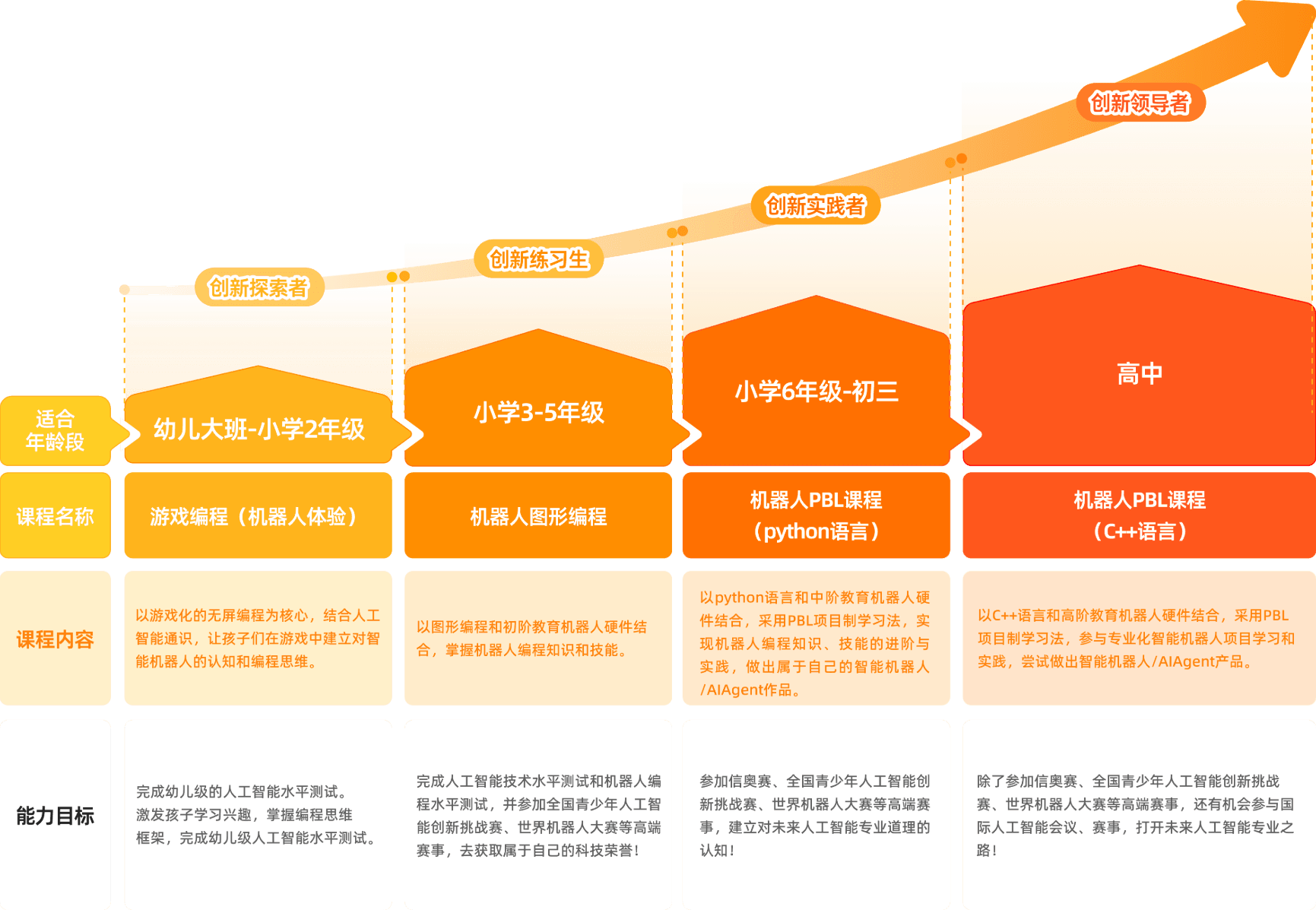 课程以项目制结合最终任务挑战为主线,重点围绕机器学习技术,结合"M.A.R.K 机器视觉人工智能学习小车"教具和 Python 与 MicroPython 编程软件设计,编写对应的项目程序和最终任务挑战程序,课程由浅入深的帮助学生建立对机器学习的认知。
